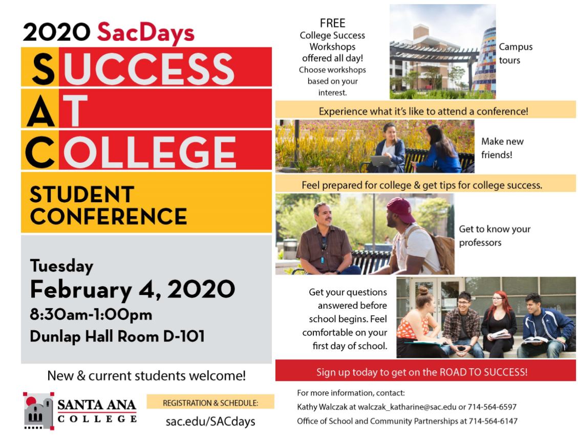 SACDays is your chance to jumpstart your college journey, connect with faculty and staff, explore support programs, and gain the tools and confidence to thrive at Santa Ana College.