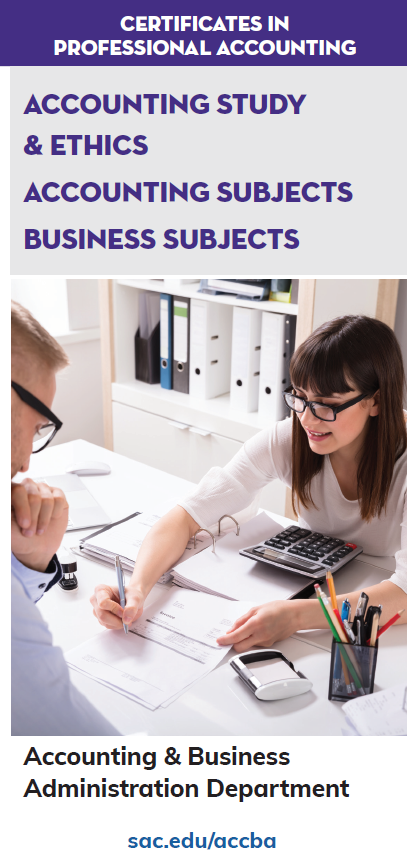 Santa Ana College may have a program to help you meet the educational requirements to sit for the CPA exam. The college offers evening, online & hybrid courses making our programs a cost-effective option available for full-time professionals. Three certificates have been put together to reflect three major groupings of the educational requirements set forth by the California Board of Accountancy. The three certificates are as follows: