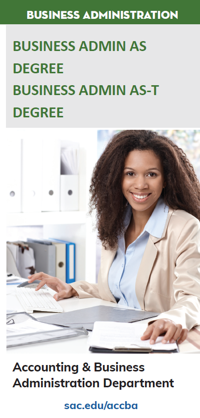 The associate degree curriculum in business administration enables students to move into a curriculum at a four-year institution leading to a baccalaureate degree. Career opportunities exist in many areas of business administration such as accounting, financial planning and analysis, financial service specialties, management, marketing and sales, production and logistics, and systems and technology development.