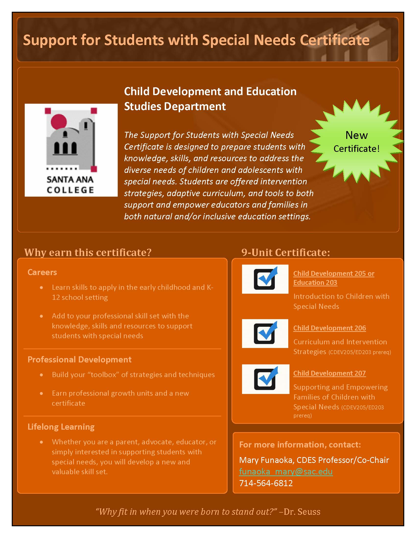 Welcome to the Department of Child Development and Education Studies! This website provides you with the resources you need to assist you in being academically and professionally successful as an advocate of children. Take a look at the links to the left and begin your journey in what will become an incredible career working with children, families and your community. If that person is you, we welcome you to an incredible program of active learners, and look forward to you joining our program!
