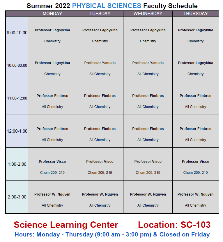 Students receive support (tutoring and topic workshops) in their coursework from the Science Learning Center which is staffed by chemistry faculty and students.