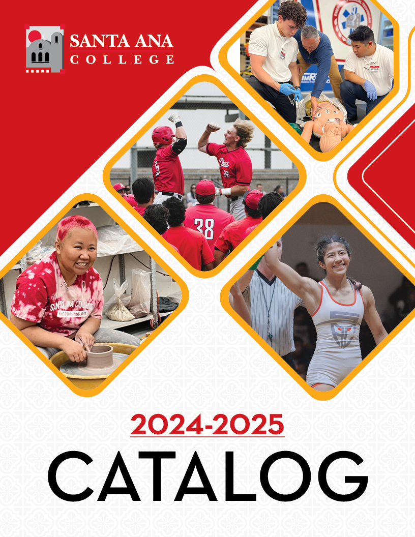 The Santa Ana College Catalog is an official document that holds the college's policies, regulations, degrees & certificates, and curricular content. Since policies and regulations can change, students are held to the policies listed in the catalog at the time of their first registration.