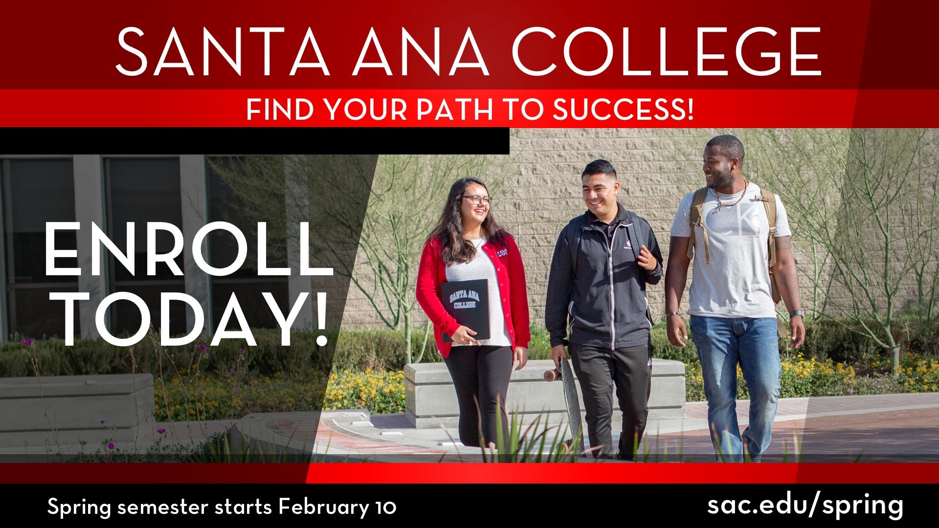 The Santa Ana College logo or the name “Santa Ana College" must be included in the graphic.
